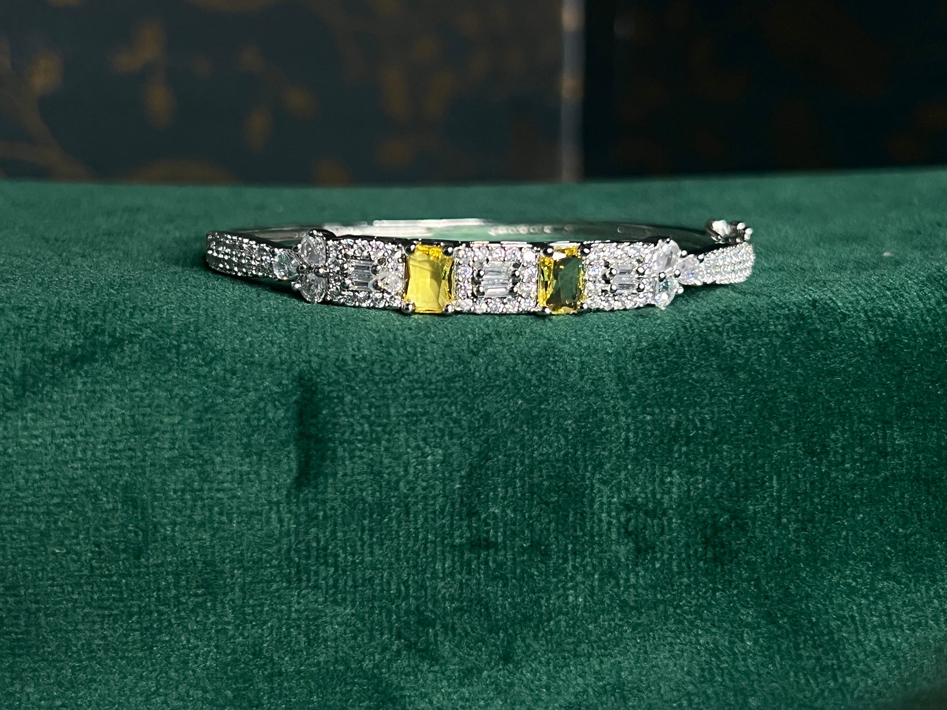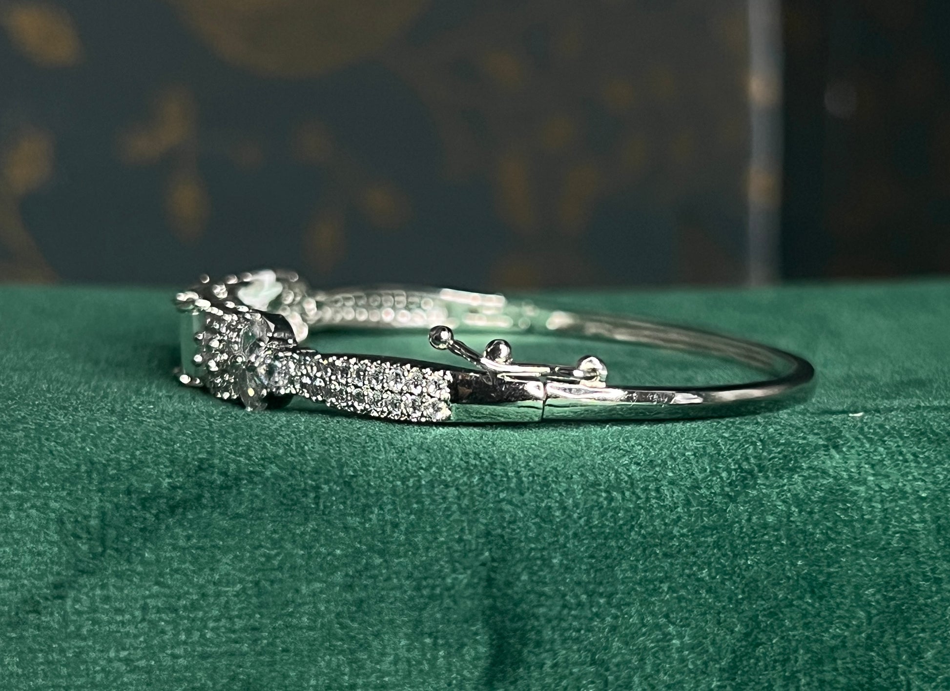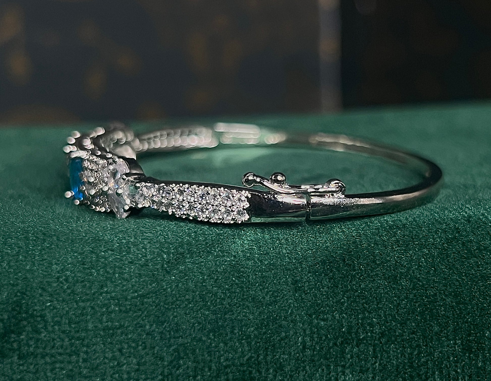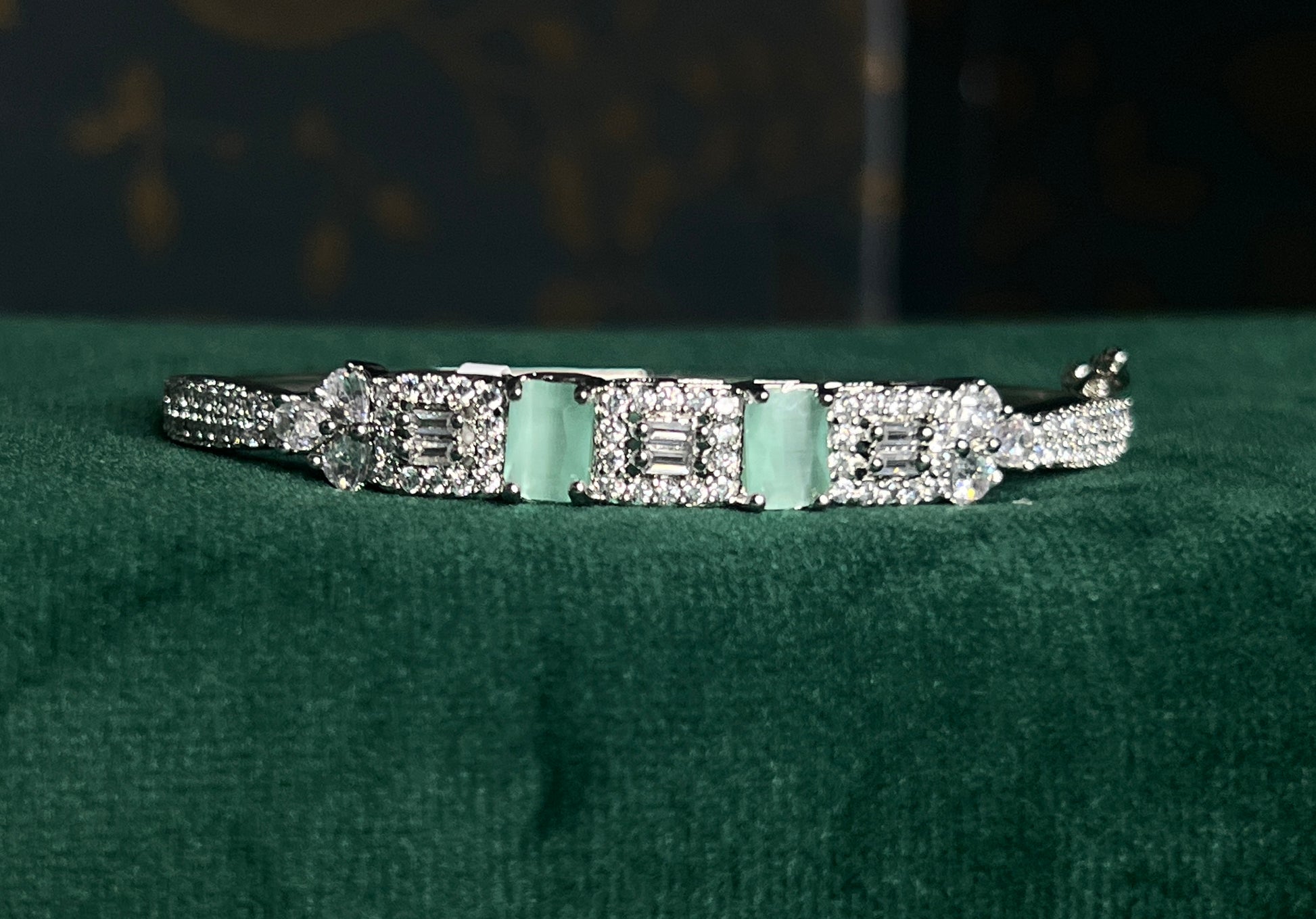 The Dainty Bracelet is the perfect accessory for any occasion. Made with high-quality silver and adorned with beautiful colored stones, this bracelet exudes elegance and sophistication. Its openable design makes it a convenient and stylish addition to any outfit. With a size suitable for wrist measurements of 2.6-2.8, this indowestern-inspired bracelet is sure to enhance your overall look.