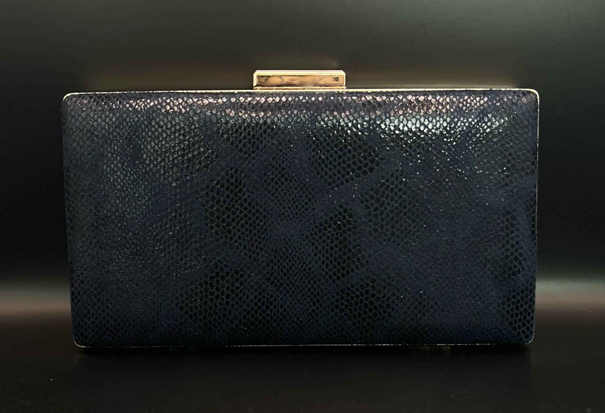 This elegant Faux Snakeskin Purse is perfect for special occasions. Made with high-quality faux leather. The metal framing and storage shoulder chain provide great utility and storage capacity, ideal for carrying all the items you need for an evening out. Approximately 8'' x 5'' x 1.5''