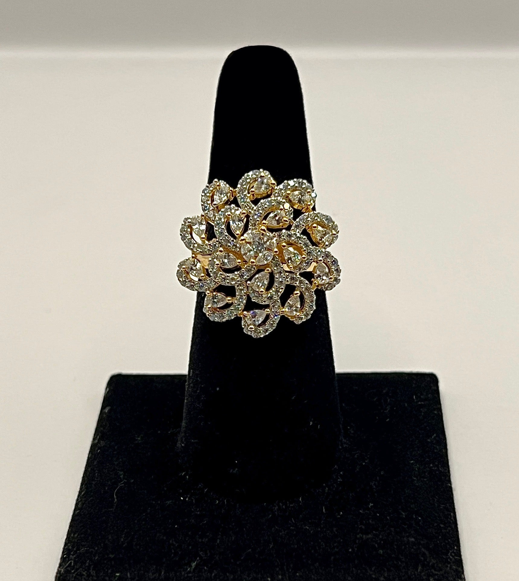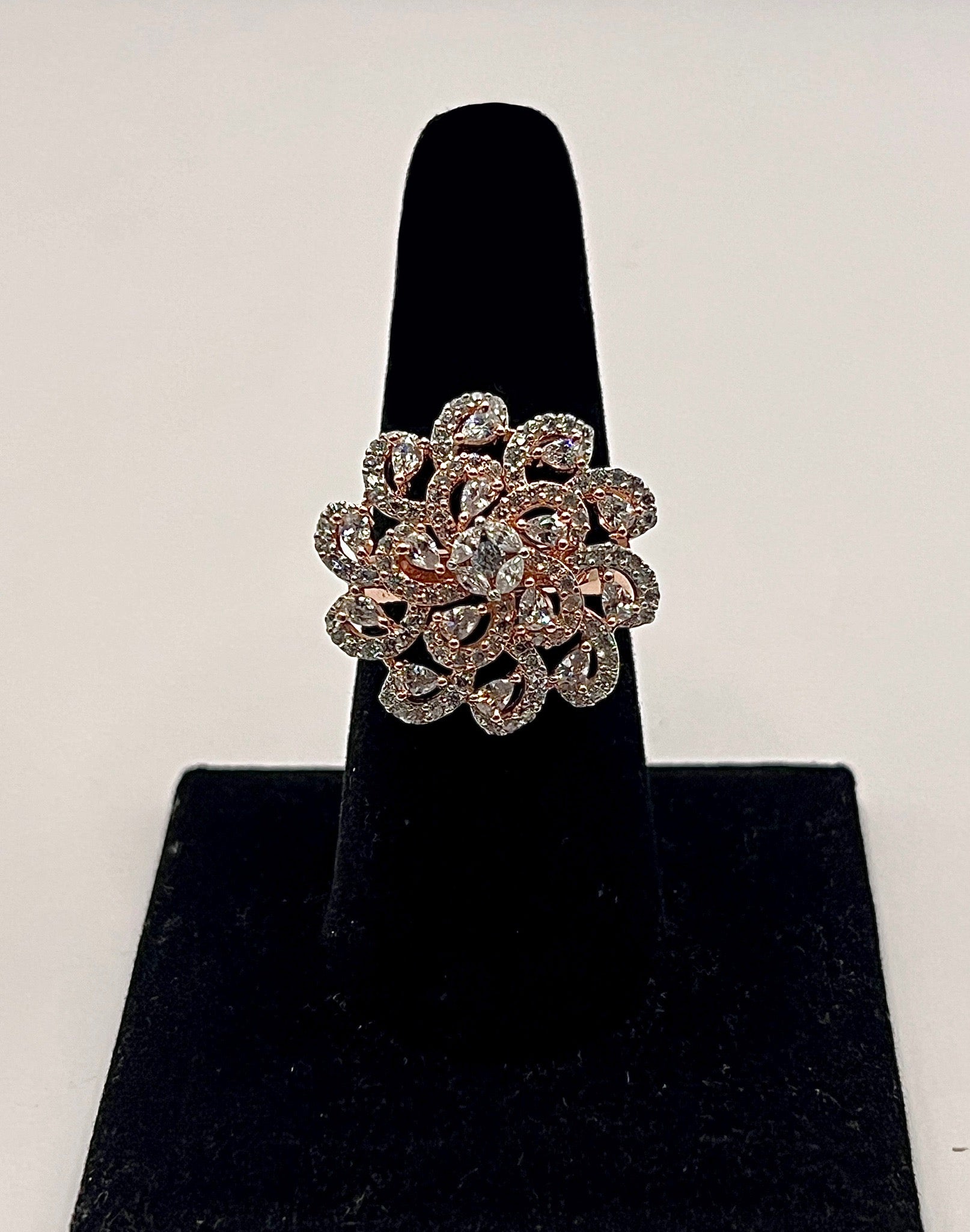 This stunning Flower Ring features a beautiful two-tone and rose gold finish, making it a versatile piece for any outfit. Its adjustable size allows for the perfect fit, while the quarter coin circle size adds a unique touch. Elevate your style with this gorgeous statement piece.
