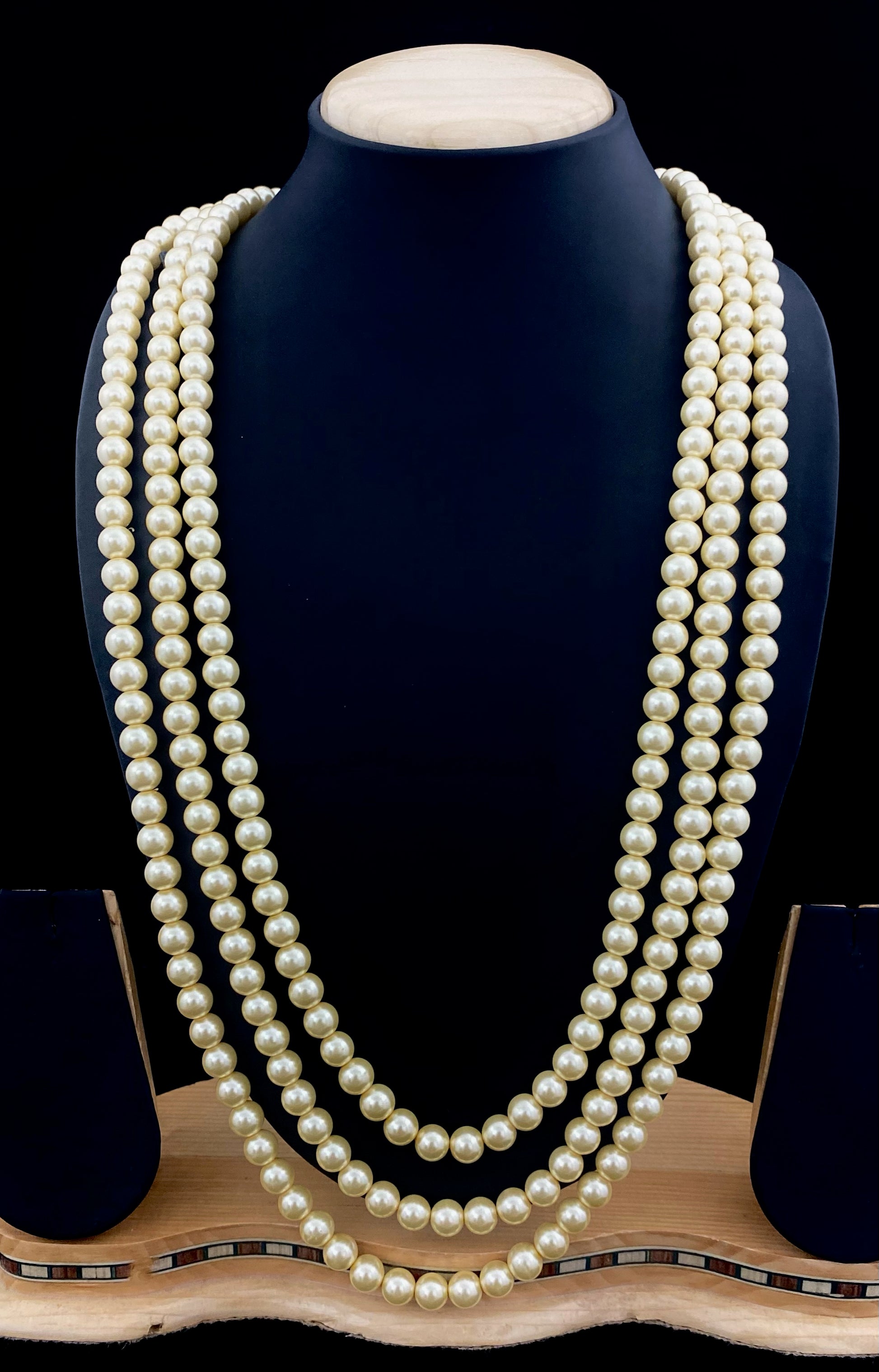 This plain Pearl Mala can never go wrong with any outfit. A timeless accessory that adds an elegant touch to any look. Length of the necklace approximately 14" Long. Without earrings.