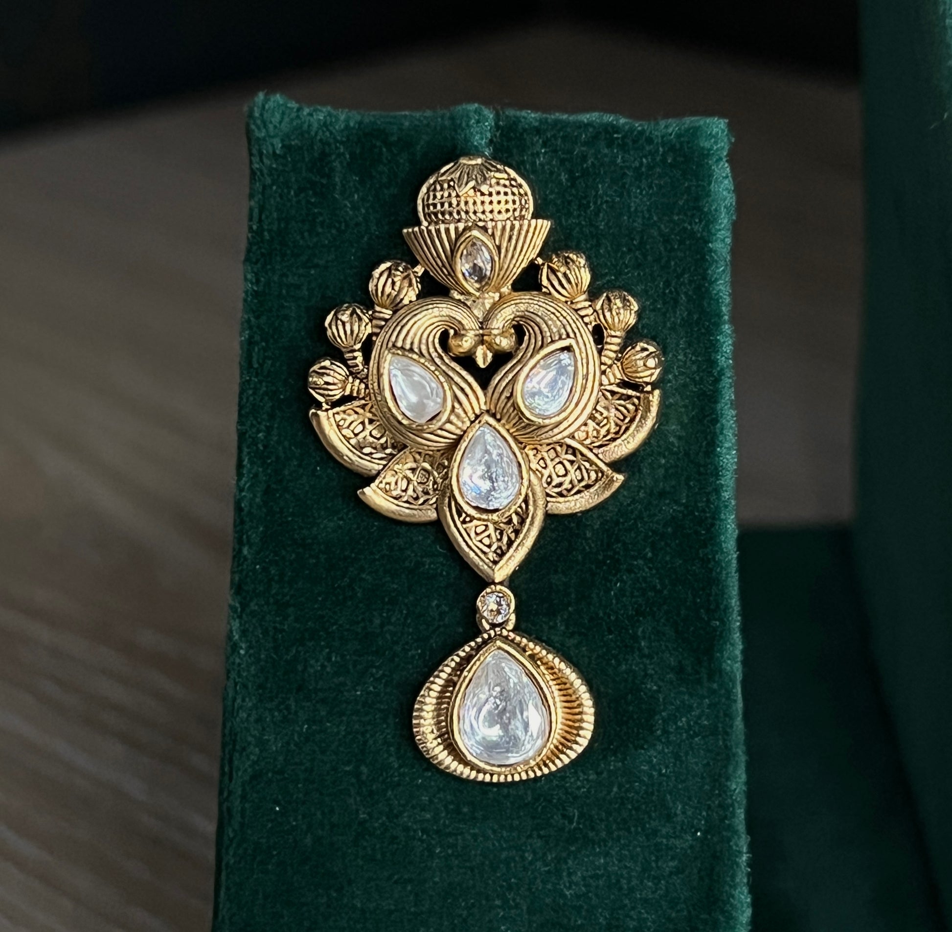 This Pearl Matte Gold Necklace is a stunning traditional piece featuring a delicate design with golden beads and conjoined birds. Made with high-quality materials, this necklace is a timeless addition to any jewelry collection. Its elegant and unique design is sure to stand out and add a touch of sophistication to any outfit.