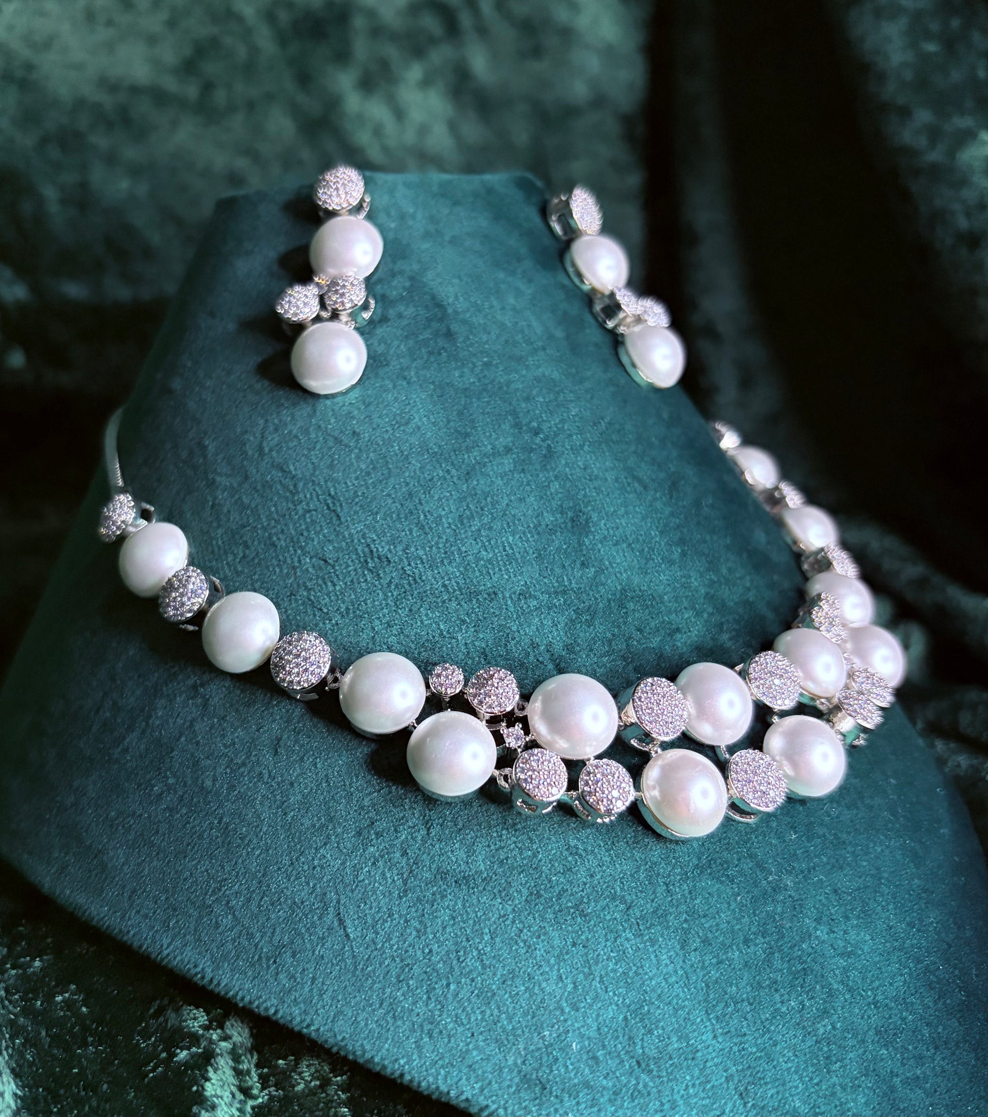 This striking pearl necklace combines classic sophistication with contemporary design, featuring a lustrous pearl suspended in polished silver with an accent stone that adds distinctive character. The modern aesthetic makes it an exceptional choice for formal gatherings, cocktail events, and milestone celebrations where refined elegance matters. The interplay between the pearl's organic beauty and the silver's clean lines creates visual depth, while the accent stone introduces an unexpected element of intrigue. A versatile investment piece for discerning jewelry collectors who value both artistry and wearability.